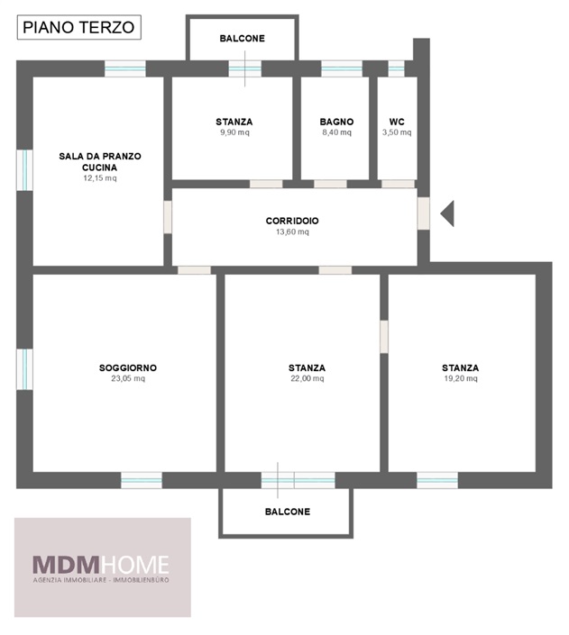 Al terzo piano, senza ascensore, si apre un appartmento di 112 metri quadri netti circa, curato con grande attenzione ed in condizioni impeccabili. L'ingresso, accogliente e luminoso, introduce ai vari ambienti, accompagnato da una raffinata pavimentazione in palladiana che dona carattere e calore. La cucina abitabile è pensato per la vita quotidiana di una famiglia, il soggiorno - con i suoi generosi 23 metri quadri circa - è il luogo ideale per ritrovarsi e rilassarsi. Le tre camere da letto offrono superfici di 12, 19 e 22 metri quadri, con pavimenti in legno ed ambienti versatili: la più piccola è oggi utilizzata come pratica lavanderia / studio, una soluzione comoda e già pronta pr chi lavora da casa o desidera uno spazio funzionale in più.