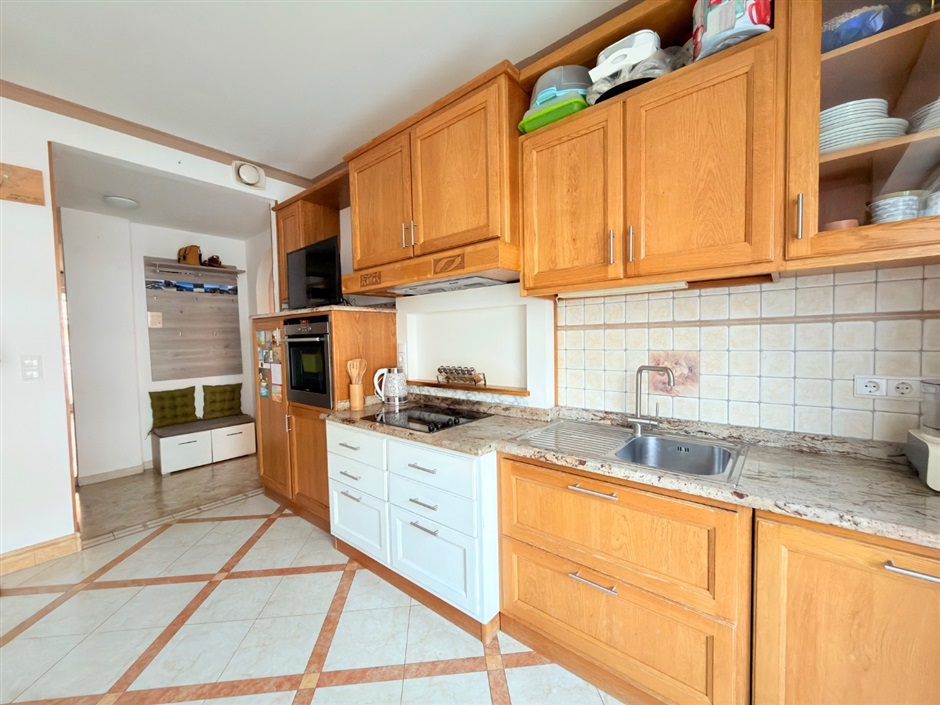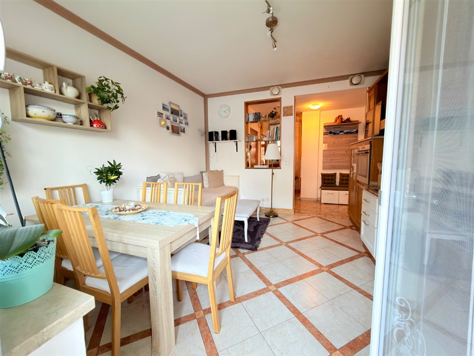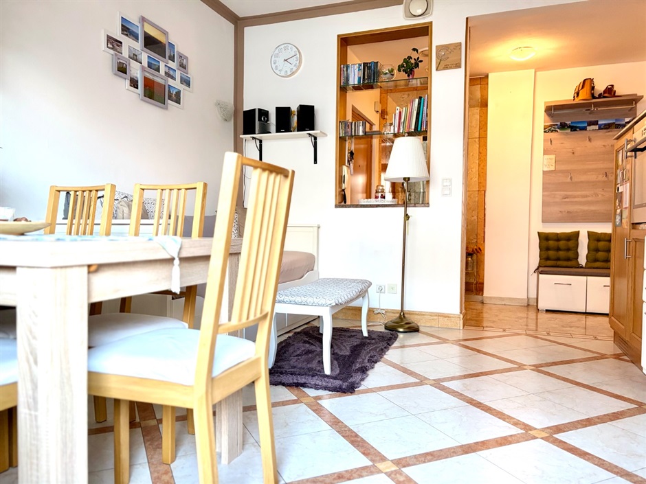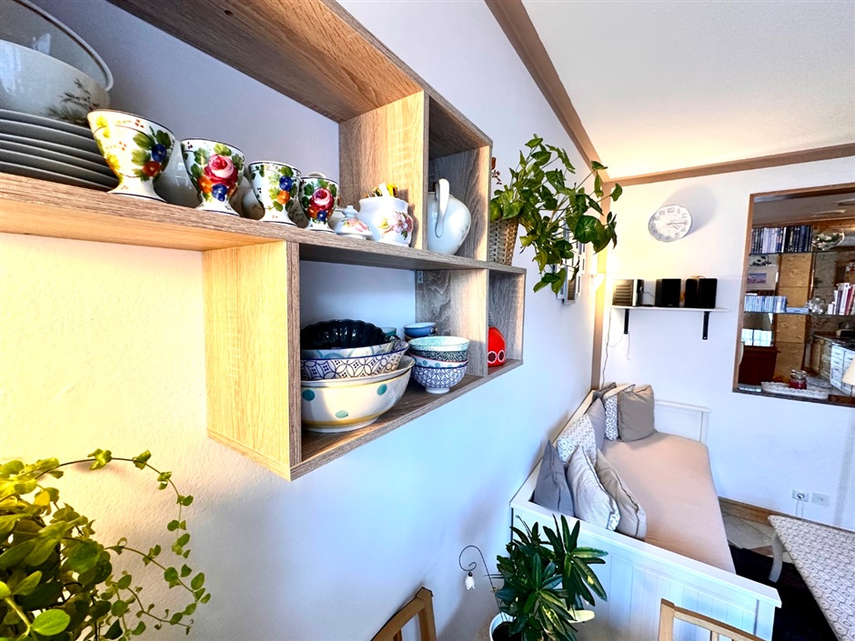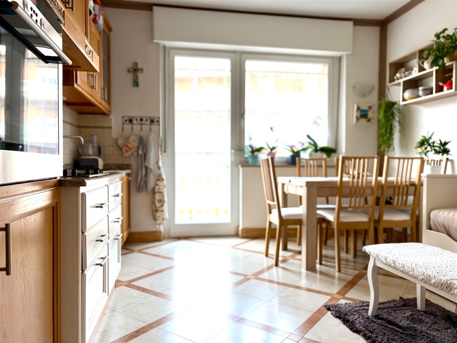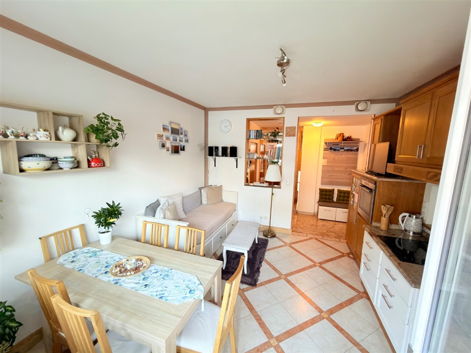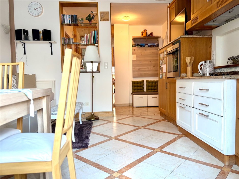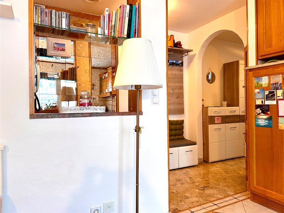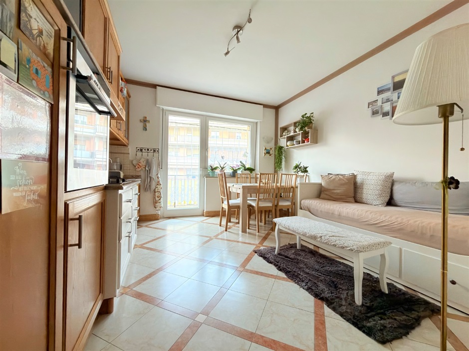 Ampio e grazioso bilocale, via Leopardi. A due passi dal cuore di Merano, in via Leopardi, proponiamo in vendita un grazioso e accogliente bilocale di generose dimensioni situato al primo piano di un edificio servito da ascensore. L'appartmento, in buone condizioni e curato nei particolari, conquista fin dal primo istante: varcata la soglia, protetta da porta blindata, si viene accolti da un ingresso attrezzato con mobili funzionali ed armoniosamente integrati nello spazio, mentre sulla destra si apre un luminoso open space che ospita cucina, zona pranzo ed area relax con divano, il tutto impreziosito dall'uscita sull'ampio balcone ideale per godersi momenti di tranquillità all'aria aperta. Pur essendo concepiti come un unico ambiente, ingresso e zona giorno sono sapientemente separati dal mantenimento di una parte del muro divisorio con un'elegante apertura verso il living, una soluzione pratica ed originale che definisce gli spazi senza rinunciare alla luce naturale.