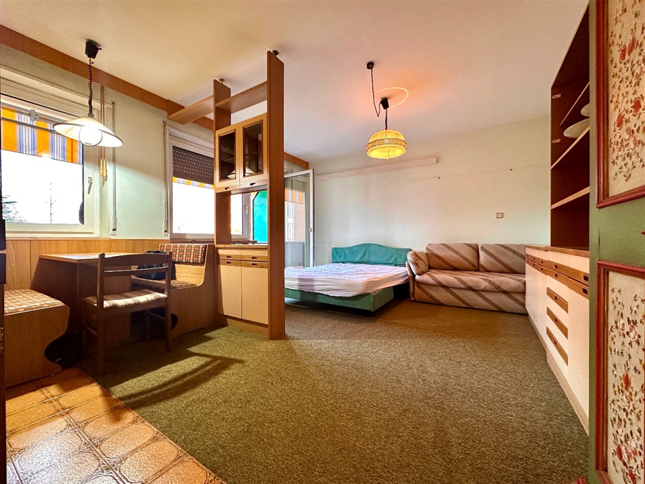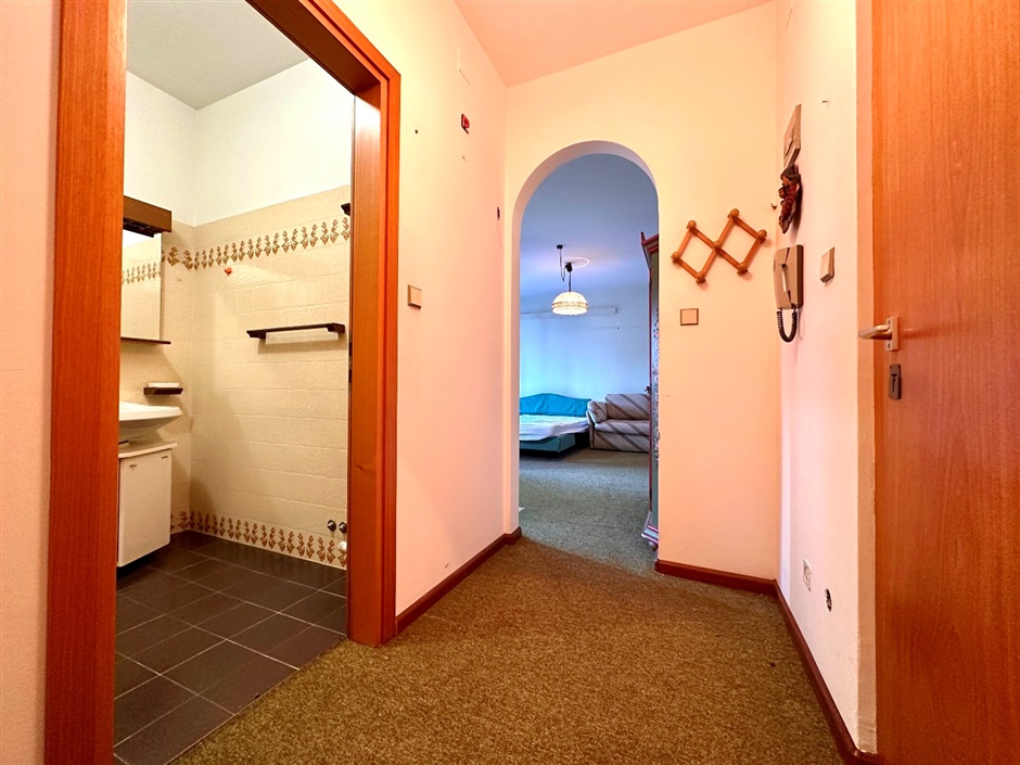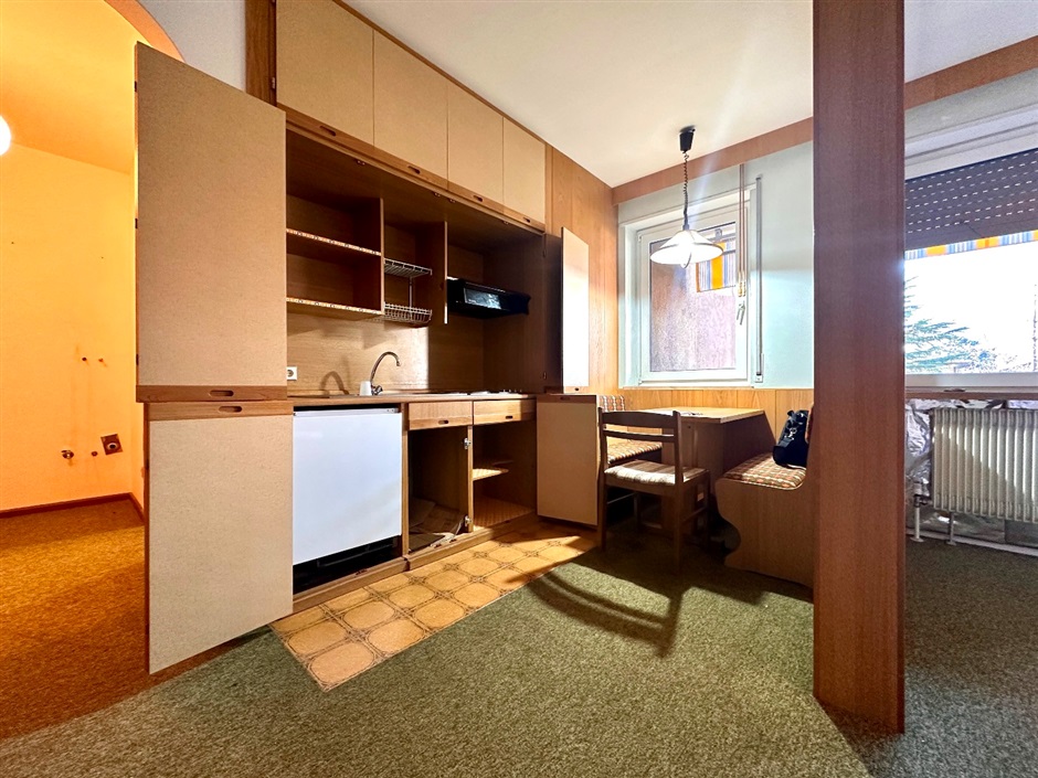 Ampio e luminoso monolocale. In via Santa Maria del Conforto, all'interno di un residence elegante e curato in ogni dettaglio, immerso in un ampio parco con piscina condominiale, ti aspetta un monolocale al pirmo piano con ascensore, sorprendetemente luminoso grazie ai suoi tre punti luce che riempiono il l'ambiente di sole ed atmosfera. L'ingresso si apre su un accogliente e pratico disimpegno, perfetto per organizzare al meglio lo spazio con un mobile d'ingresso o un comodo armadio, mentre il bagno, ampio e funzionale, dispone di doccia. Attraverso un armonioso arco che lascia filtrare la luce naturale, si accede al grande open space, dove la cucina si sviluppa sulla parete a sinistra ed il tavolo da pranzo trova posto sotto la prima finestra, creando un angolo conviviale che dialoga con la zona living, separata da un mobile divisorio ed impreziosita dalla seconda finestra e dalla porta finestra che conduce al grande balcone con tende da sole nuove, un vero prolungamento dell'appartamento verso l'esterno. Con circa trenta metri quadri netti ed un'esposizione ad ovest che regala luce e sole dal primo pomeriggio fino al ramonto, l'appartamento affaccia sul parco condominiale e sulle montagne, offrendo uno scenario ideale per pranzi all'aperto o per godersi un aperitivo al rientro dalla giornata. Gli infissi in PVC con doppio vetro e la porta blindata garantiscono comfort e sicurezza, mentre completano la proprietà una spaziosa cantina ed un posto auto di proprietà non incluso nel prezzo indicato. L'abitazione è perfettamente funzionante pur richiedendo qualche intervendo di ammodernamento come una nuova pavimentazione o un rinnovo del bagno, occasione ideale per personalizzarla secondo il proprio gusto. La zona è tranquilla e ben servita da bar, ristoranti, un piccolo supermercato e tabacchi, rendendo questo appartamento una scelta ideale come prima casa, investimento o pied-à-terre a Merano, libero da vincoli ed acquistabile anche da chi non è residente nel Comune. Tutte le informazioni sono riportate indicativamente, in partiolar modo le superfici interne e possono essere soggette a modifiche. L'immobile è disponibile da subito.
