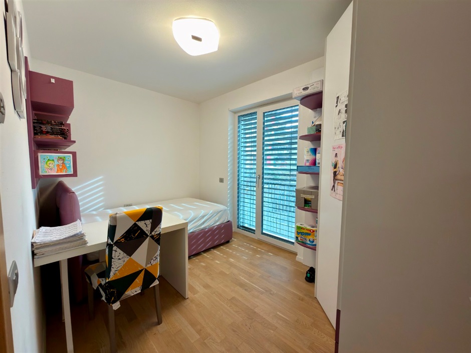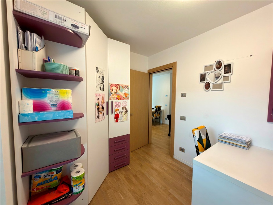 La zona notte comprende due camere da letto ben distribuite e un bagno spazioso con vasca, pensato per il relax quotidiano.
