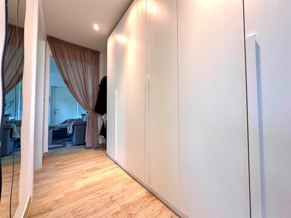 Ogni dettaglio contribuisce alla qualità dell'abitare: infissi con doppio vetro, telaio interno in legno ed esterno in alluminio, tapparelle elettriche. L'immobile viene venduto completamente arredato, pronto per essere vissuto fin da subito, ed include anche un ampio garage con portone elettrico, un valore aggiunto sempre più raro. Non è solo un appartamento, ma un luogo dove ritrovare equilibrio, luce e bellezza ogni giorno.