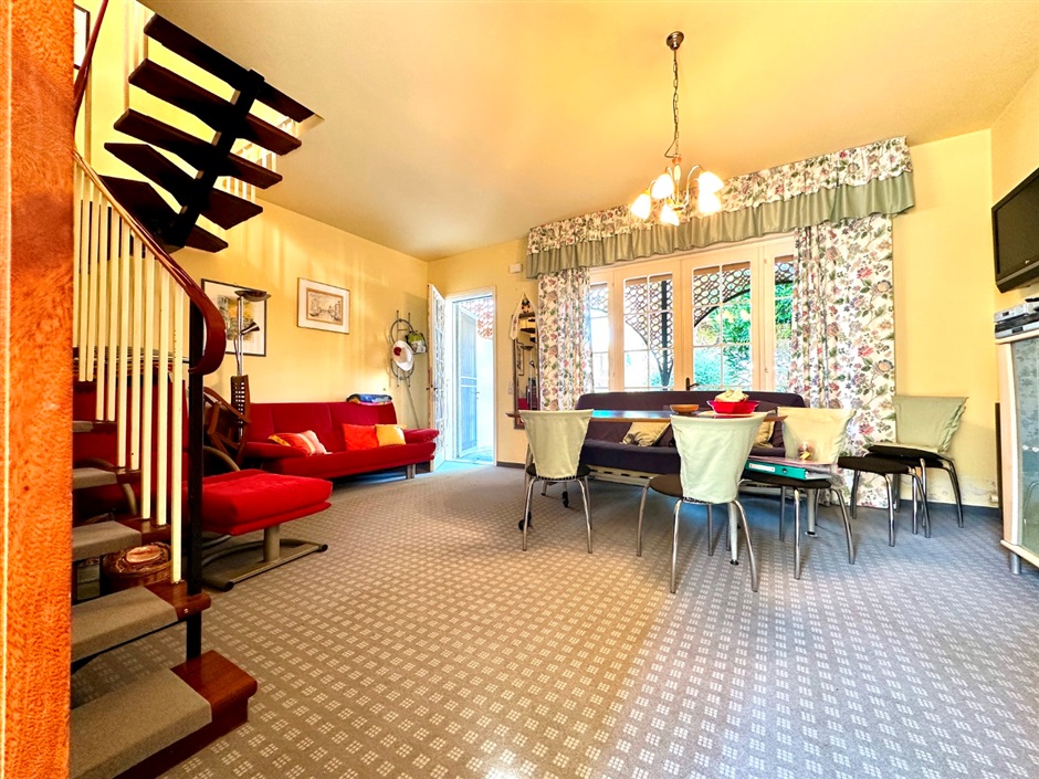 La villetta bifamiliare, con una superficie di circa 90 metri quadrati distribuiti su due livelli, accoglie con ambienti ben organizzati e pieni di luce naturale. Al piano terra troviamo un ampio soggiorno, accogliente e funzionale, ideale per trascorrere serate in famiglia o con gli amici, una cucina ben strutturata, un comodo ripostiglio e un bagno finestrato di recente ristrutturazione. Dalla zona giorno si accede a una terrazza coperta che si affaccia sul grazioso giardinetto d’ingresso di circa 20 metri quadrati e sul più ampio giardino laterale di circa 120 metri quadrati: due aree comunicanti ma distinte, che si incontrano ad angolo creando uno spazio esterno unico e versatile.